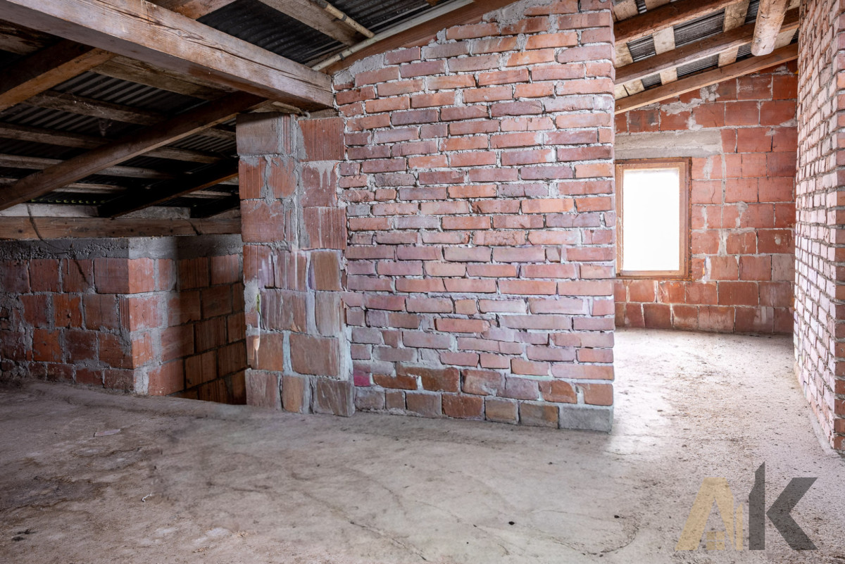 Dom o powierzchni całkowitej ok.341,9 m², o wymiarach ok. 10,5 m × 12 m. Posadowiony na działce o powierzchni 5 arów w kształcie prostokątu , o wymiarach ok.20 m × 25. m. Budynek wzniesiony z cegły, dach kryty blachą. Posesja w części ogrodzona (siatka), z dostępem bezpośrednio do asfaltowej drogi. Budynek wymaga generalnego remontu, co daje przyszłym właścicielom możliwość aranżacji wnętrz według własnych potrzeb i stworzenia przestrzeni idealnie dopasowanej do stylu życia.