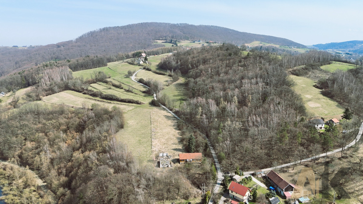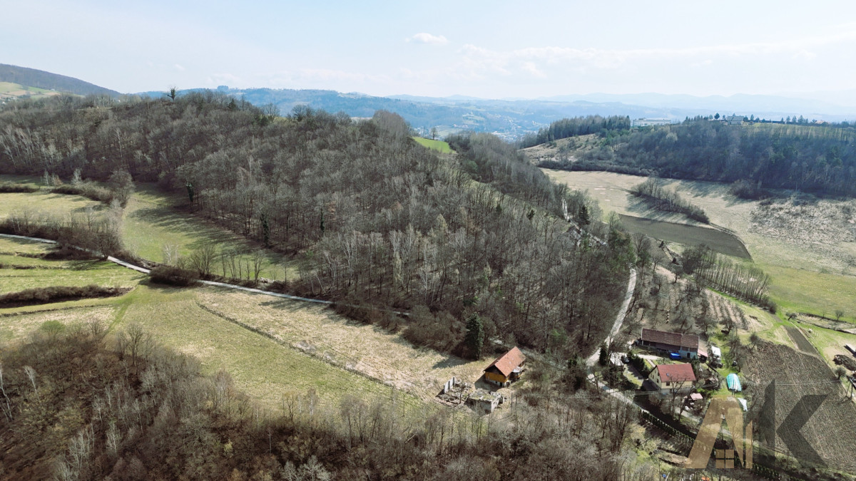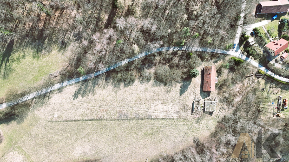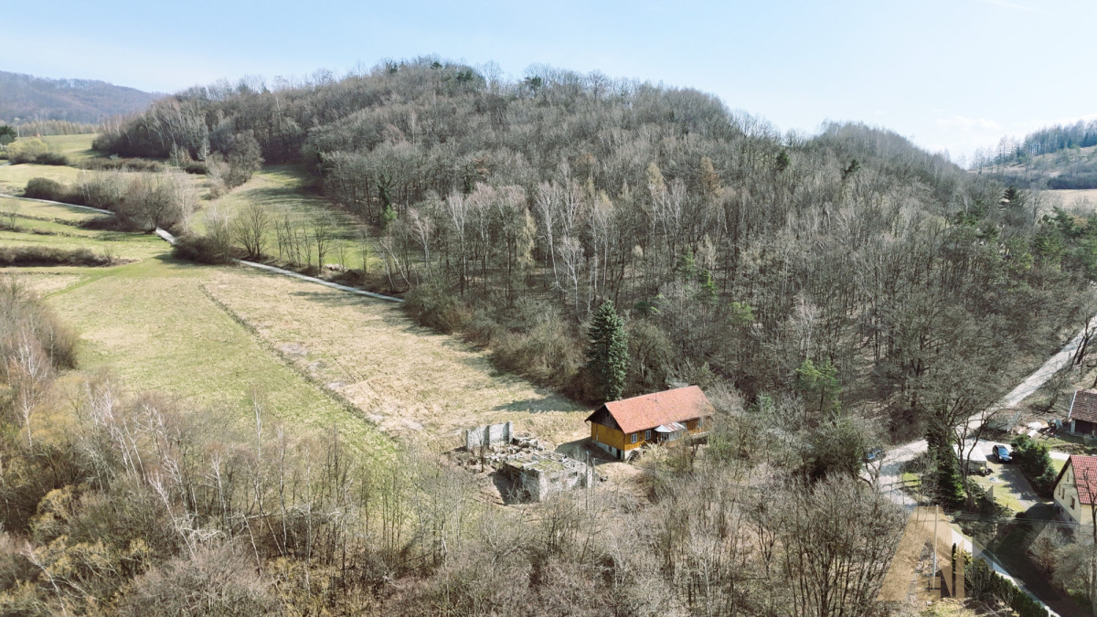 * Powierzchnia całkowita: 81,00 arów - zabudowana starym drewnianym domem oraz budynkami gospodarczymi
