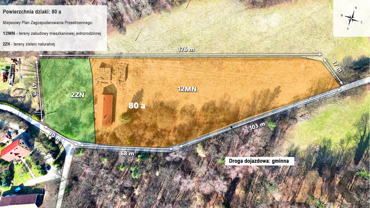 Pozostała część działki została sklasyfikowana jako tereny zieleni naturalnej (2.ZN) - około 16 arów