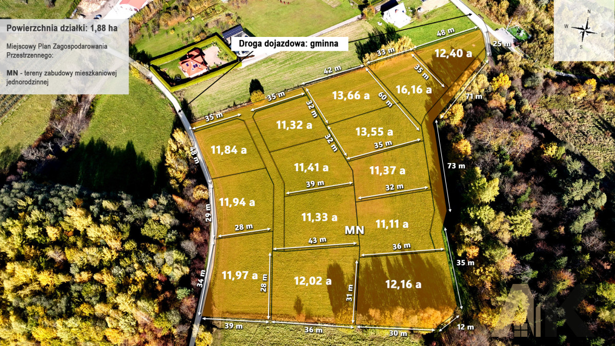 1) 11,97ar o wartości - 15000zł/1ar - rezerwacja