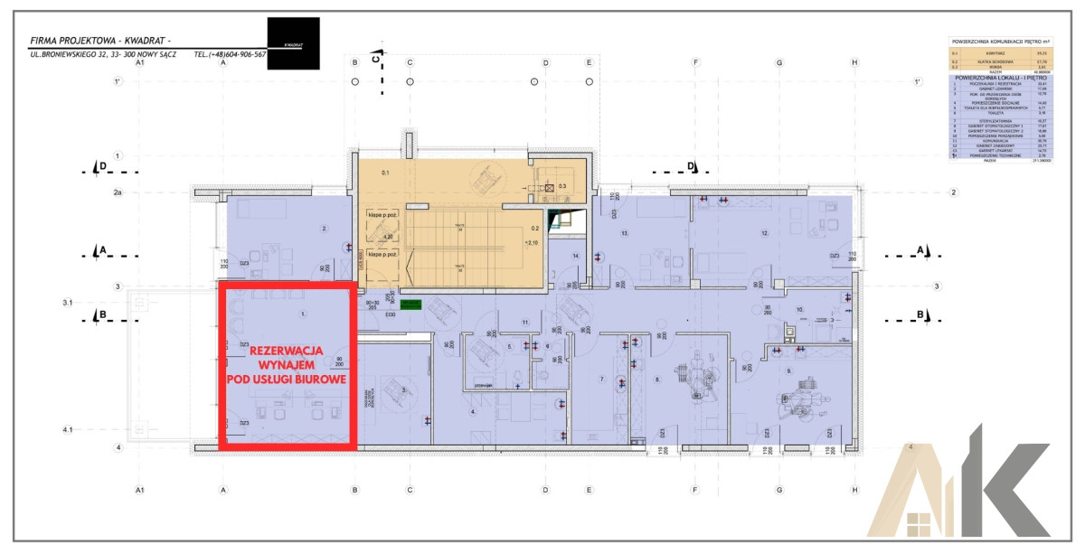 możliwość wynajmu również pod działalność biurową (biura geodezyjne, rachunkowe, księgowe itp.).
