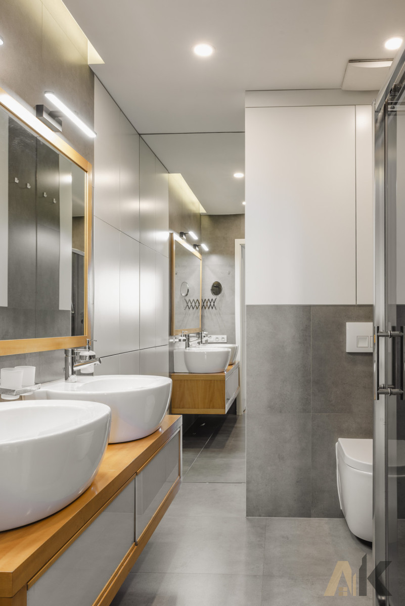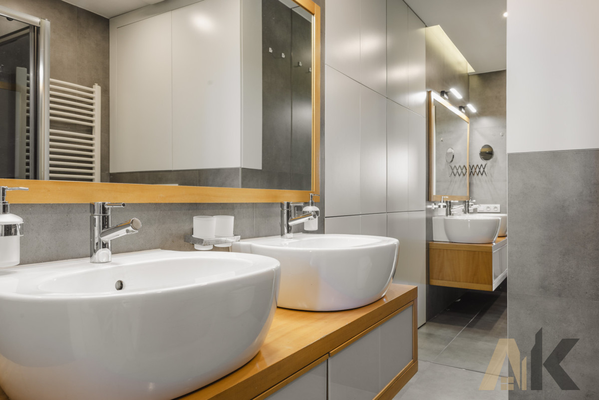 Łazienka: Szafka umywalkowa, kabina prysznicowa, zapewniająca maksymalny komfort użytkowania, pralka