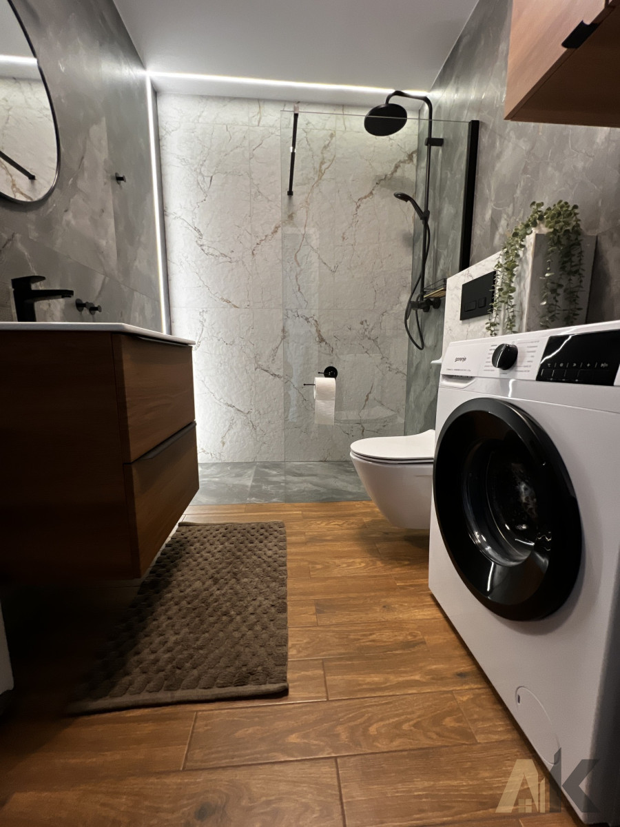 Łazienka: Szafka umywalkowa, kabina prysznicowa, zapewniająca maksymalny komfort użytkowania.
