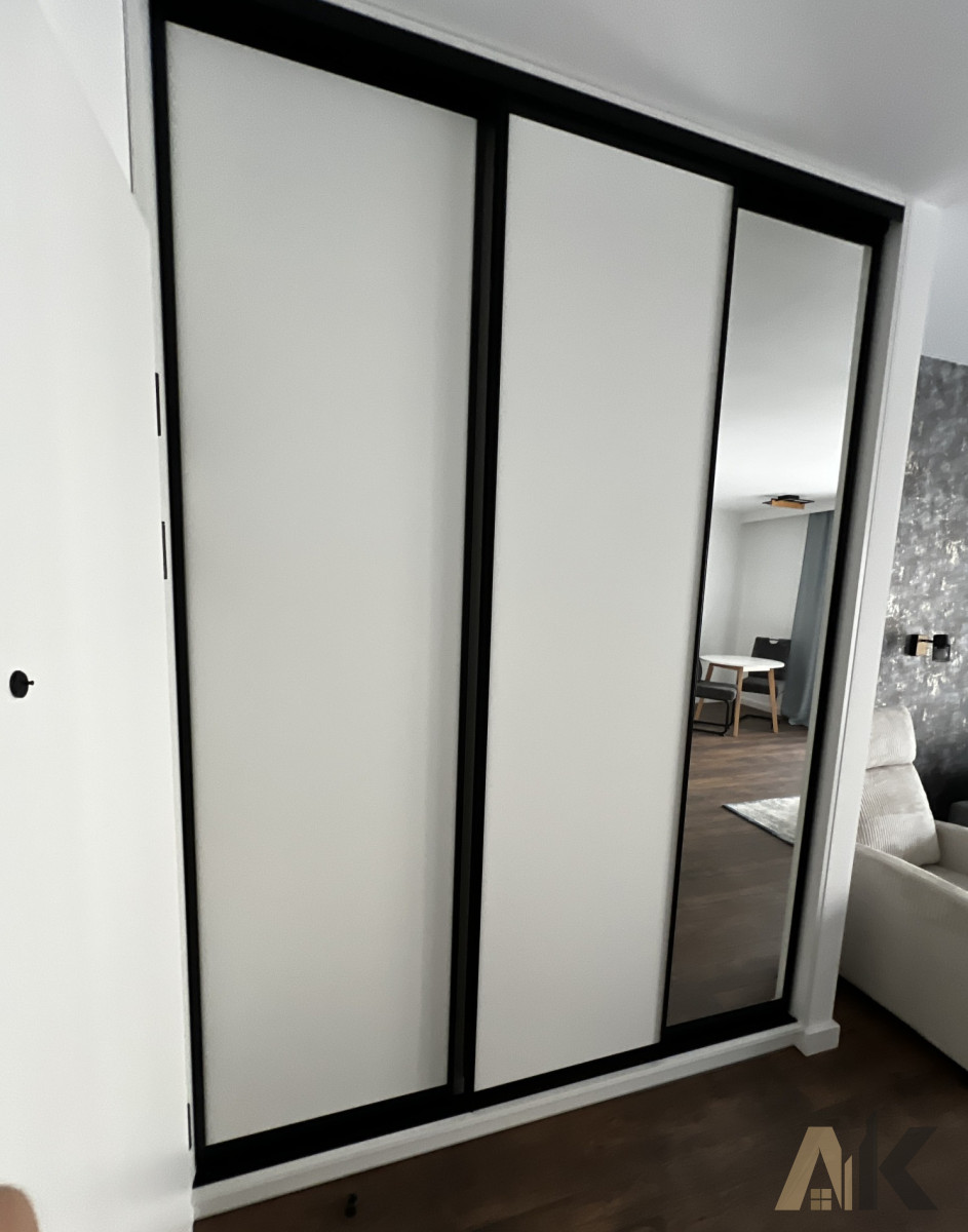 Wejście do mieszkania: duża przesuwna szafa.
