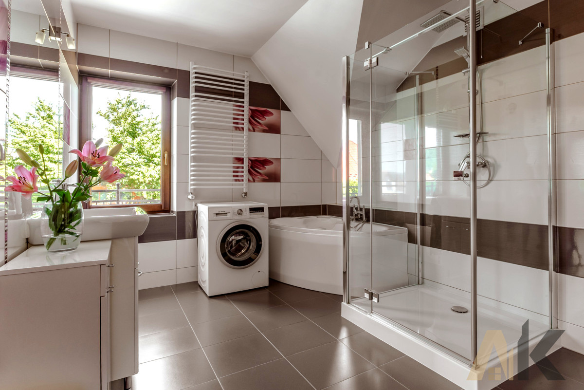 *duża łazienka z wanną i prysznicem