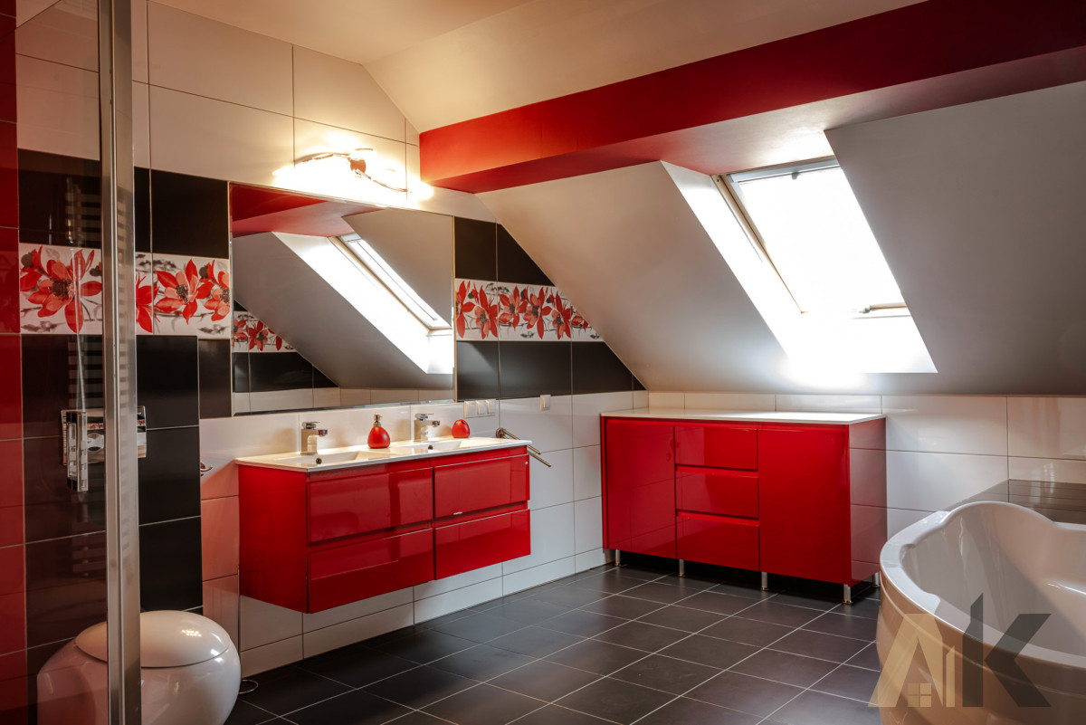 • dwie łazienki: wanna, prysznic, WC, umywalka, szafka