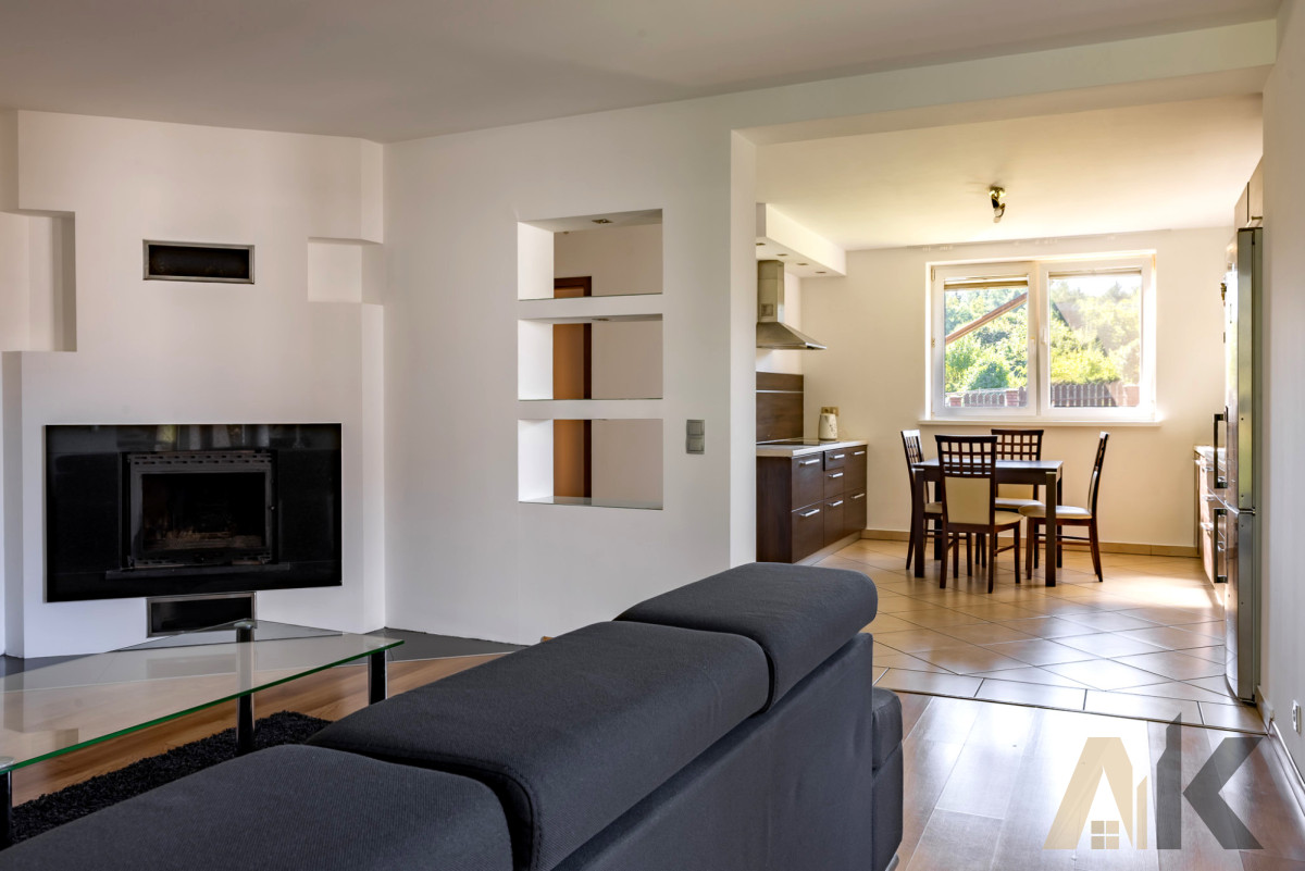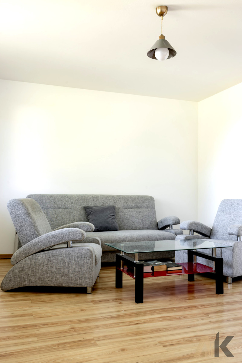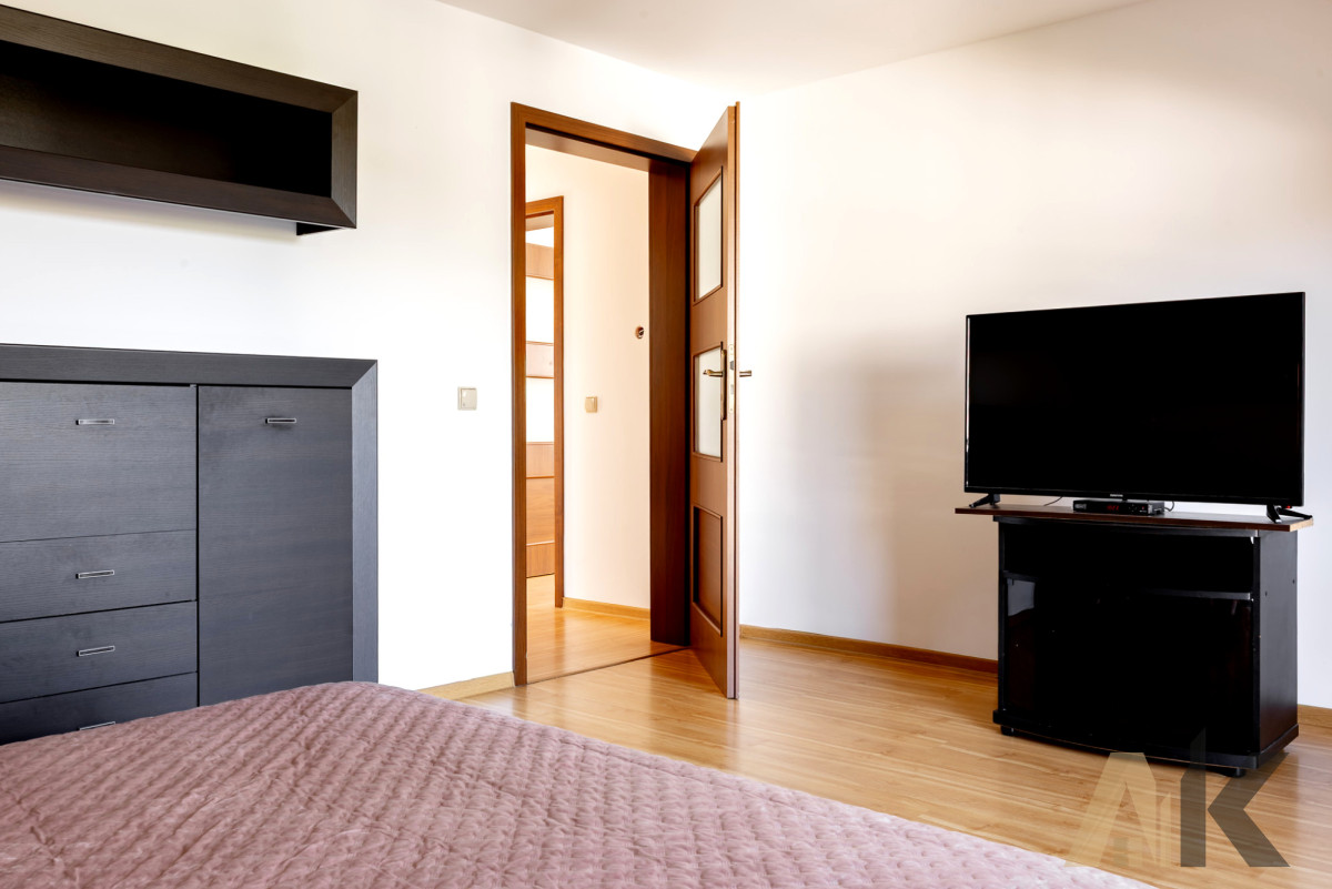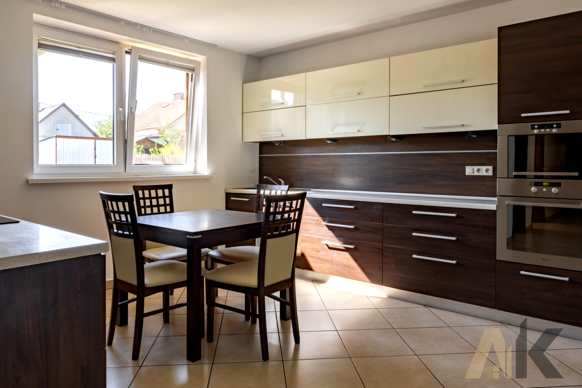 • Kuchnia w formie aneksu - jasna, w pełni wyposażona w sprzęt AGD (lodówka, piekarnik, zmywarka, płyta indukcyjna, okap)