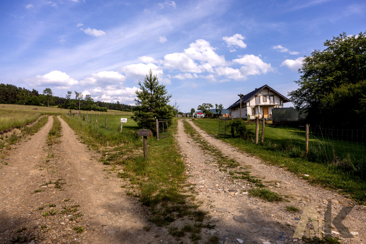 Działka położona na wzniesieniu, z naturalnym spadkiem w stronę potoku