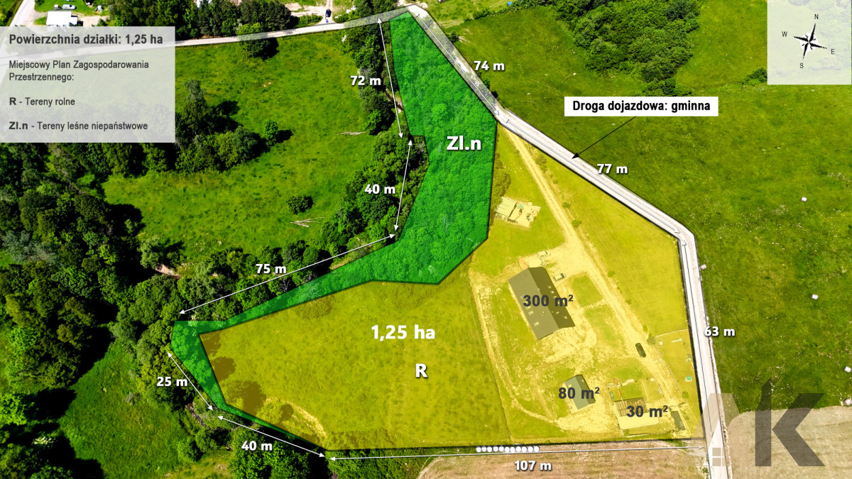Działka o powierzchni 1,25 ha z własnym potokiem i przepięknym widokiem