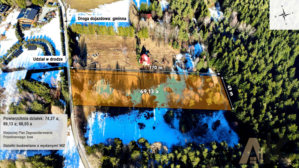 2. Działka 69,13 arów - Z wydaną WZ na budowę domu jednorodzinnego z poddaszem użytkowym oraz garażem.