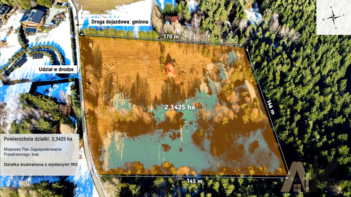 Dojazd: Bezpośredni dostęp z gminnej drogi asfaltowej.