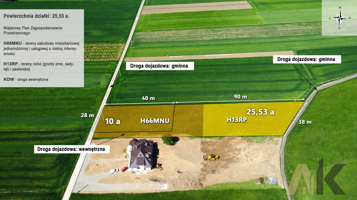 1) 25,53 ar - cena 159.000 zł. Działka jest objęta Miejscowym Planem Zagospodarowania Przestrzennego cześciowo budowlane (ok.7 ar) oraz tereny rolne (idealne pod ogród)