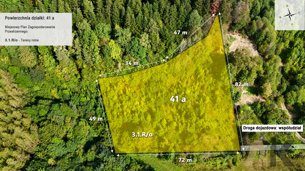 Powierzchnia działki: 4 100 m2 ( 41 arów) -