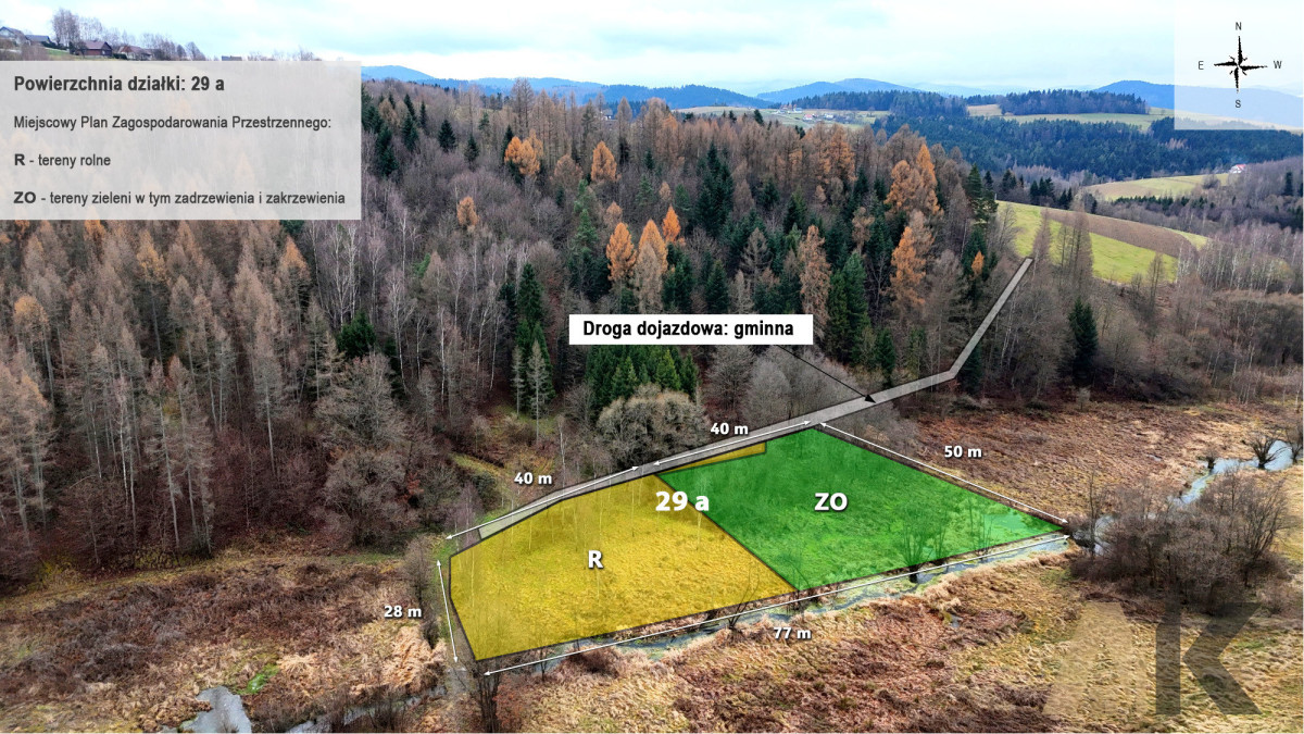Na sprzedaż działka rolna o łącznej powierzchni 28 ar w miejscowości Mszalnica, gmina Kamionka Wielka, powiat nowosądecki.