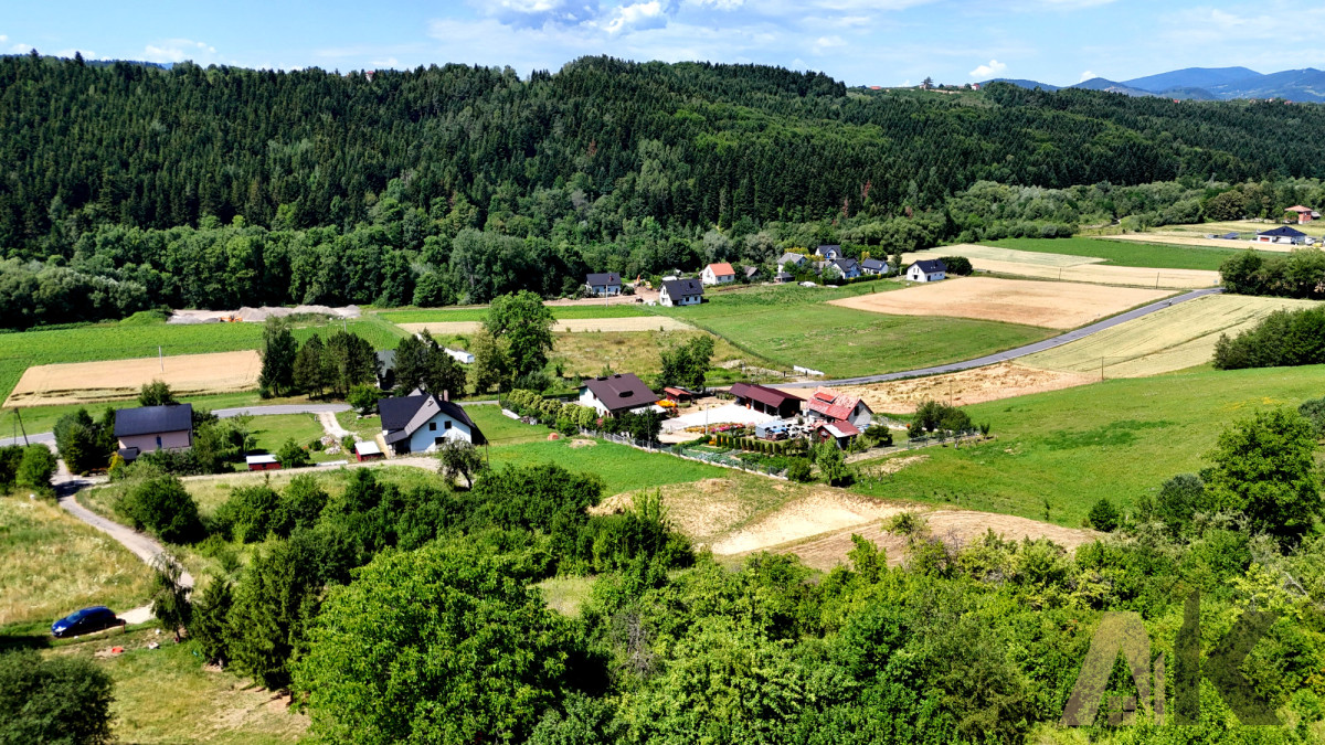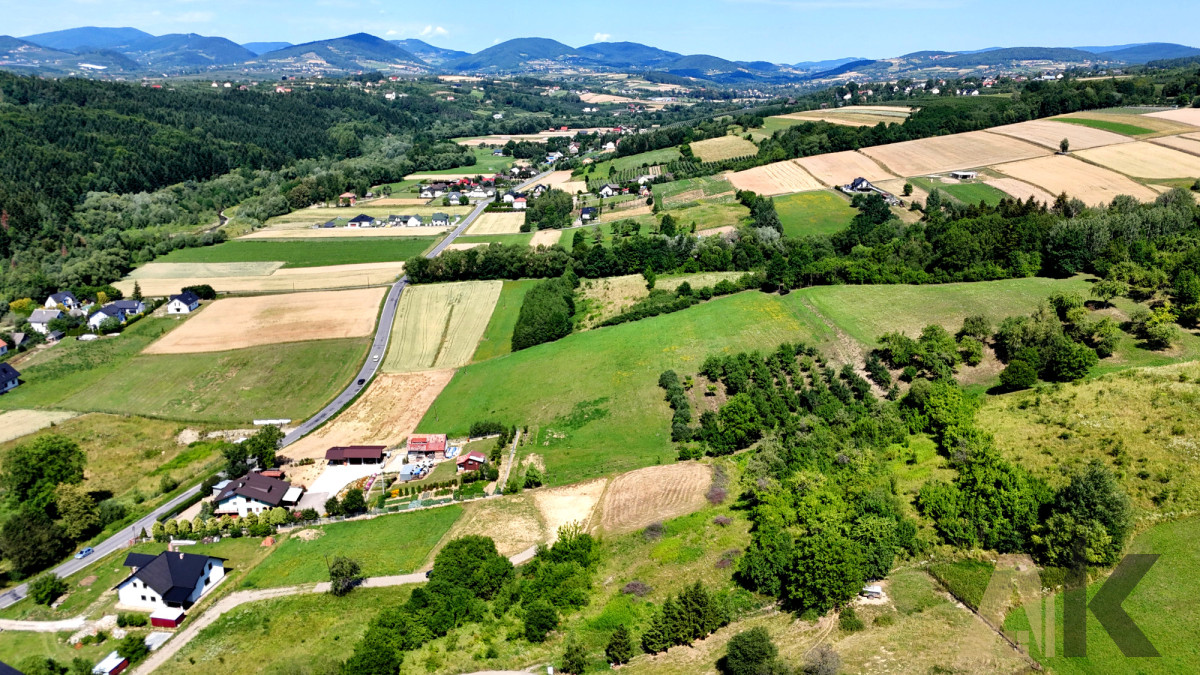 Z działki rozciąga się widok na pobliskie pola i lasy. W okolicy luźna zabudowa mieszkaniowa.