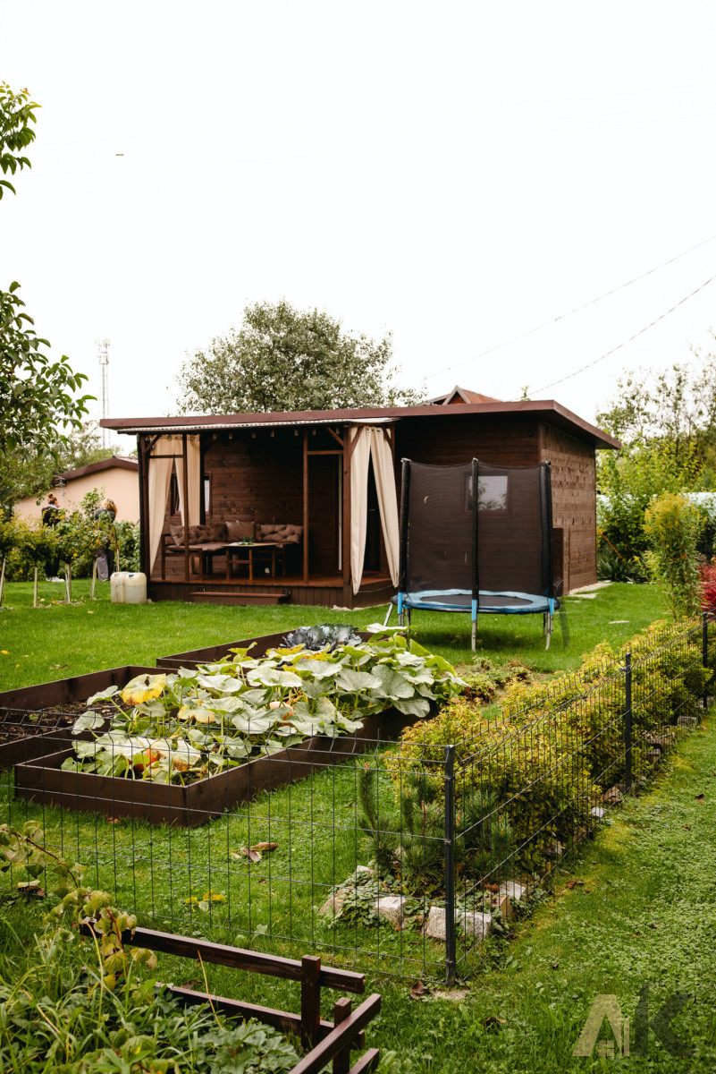 *ogród z nasadzeniami: maliny, porzeczki, kapusta, dynia, orzech, pomidory i wiele innych