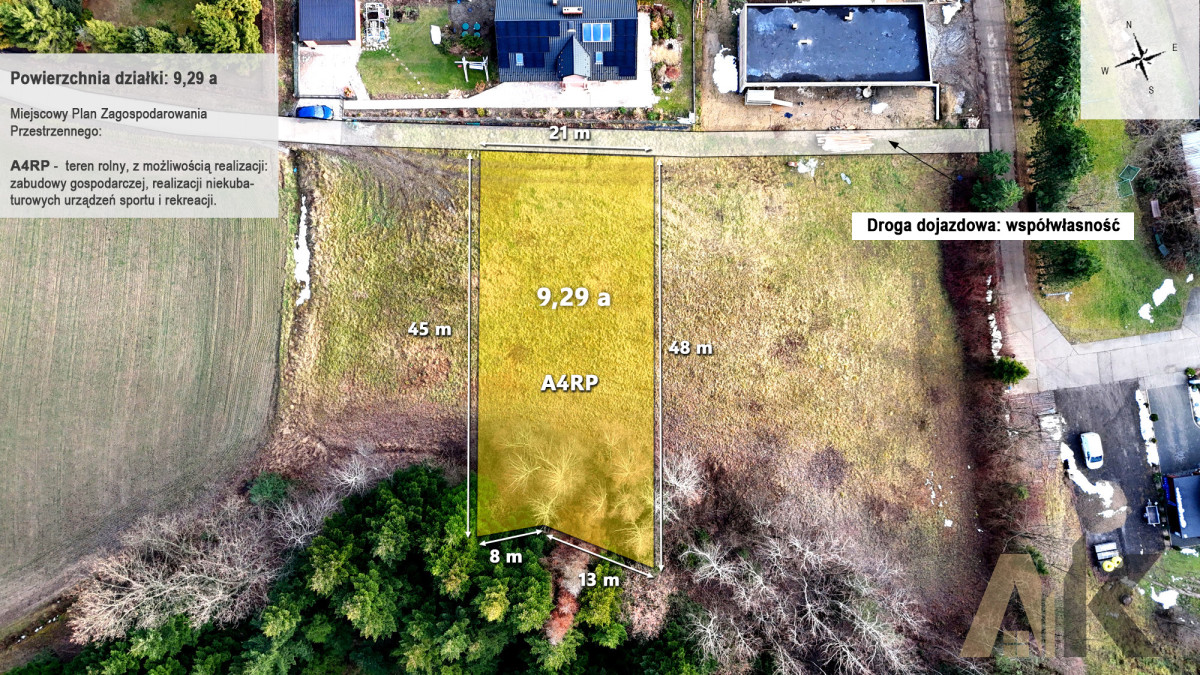Działka posiada oznaczenie A.4.RP w miejscowym planie zagospodarowania przestrzennego, co oznacza teren rolny, z możliwością realizacji: