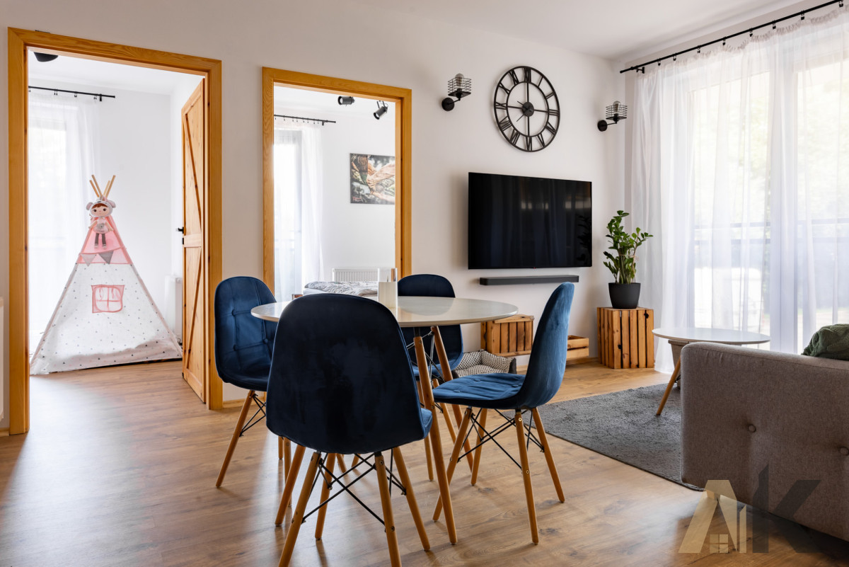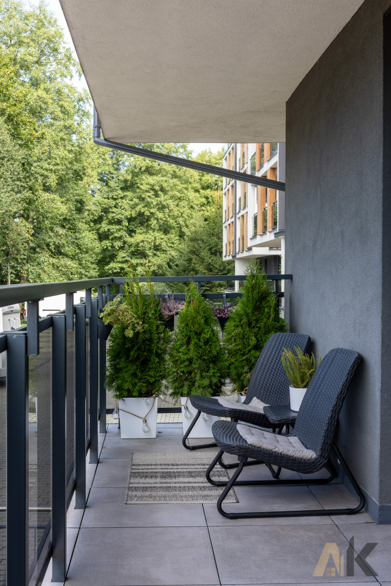Mieszanie o powierzchni całkowitej 53,58 m2 (powierzchnia użytkowa 51,24 m2) znajduje się na wysokim parterze - dodatkową powierzchnią jest balkon, na który wyjdziemy z dwóch sypialni. Nieruchomość mieści się w budynku o nowoczesnej architekturze i wyposażeniu wyjątkowym standardzie, a także w otoczeniu zieleni. Drewniane elementy wystroju idealnie komponują się z nowoczesnymi kolorami.