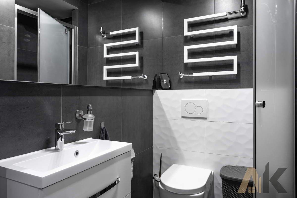 Łazienka: Szafka umywalkowa, kabina prysznicowa, zapewniająca maksymalny komfort użytkowania.