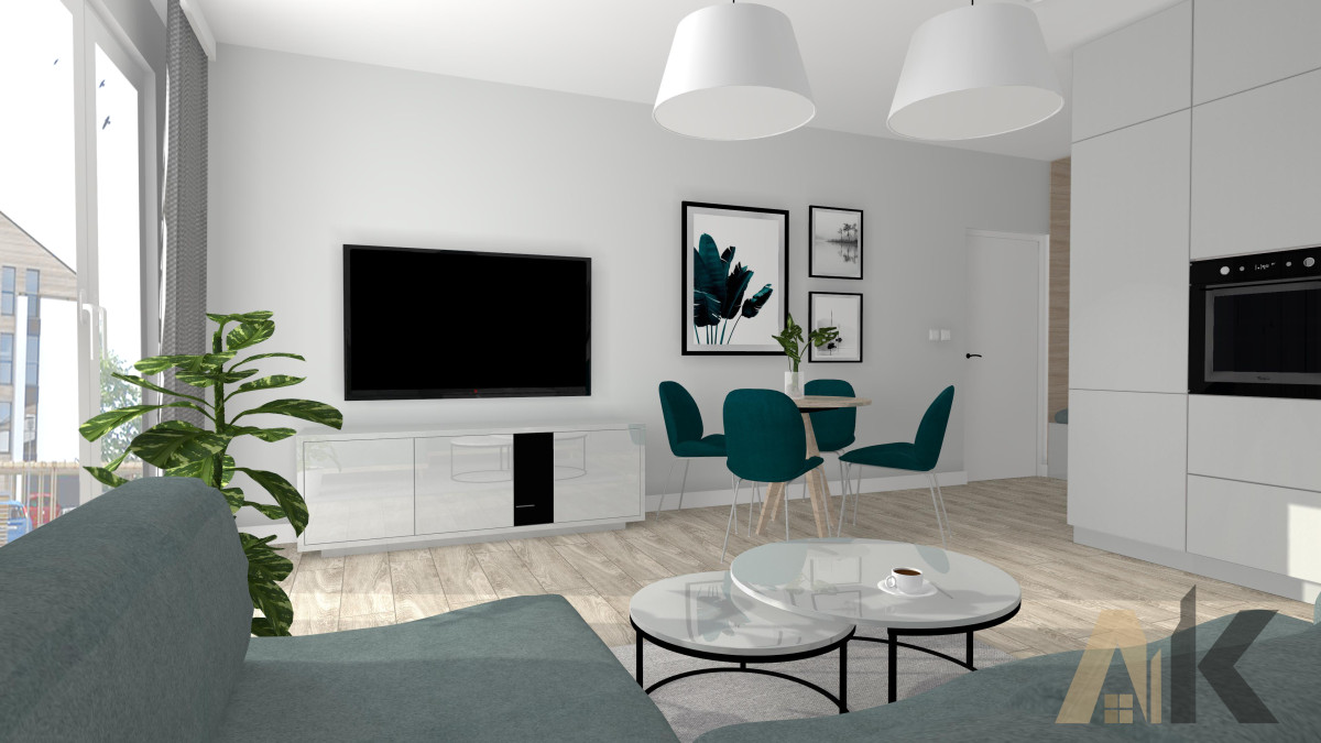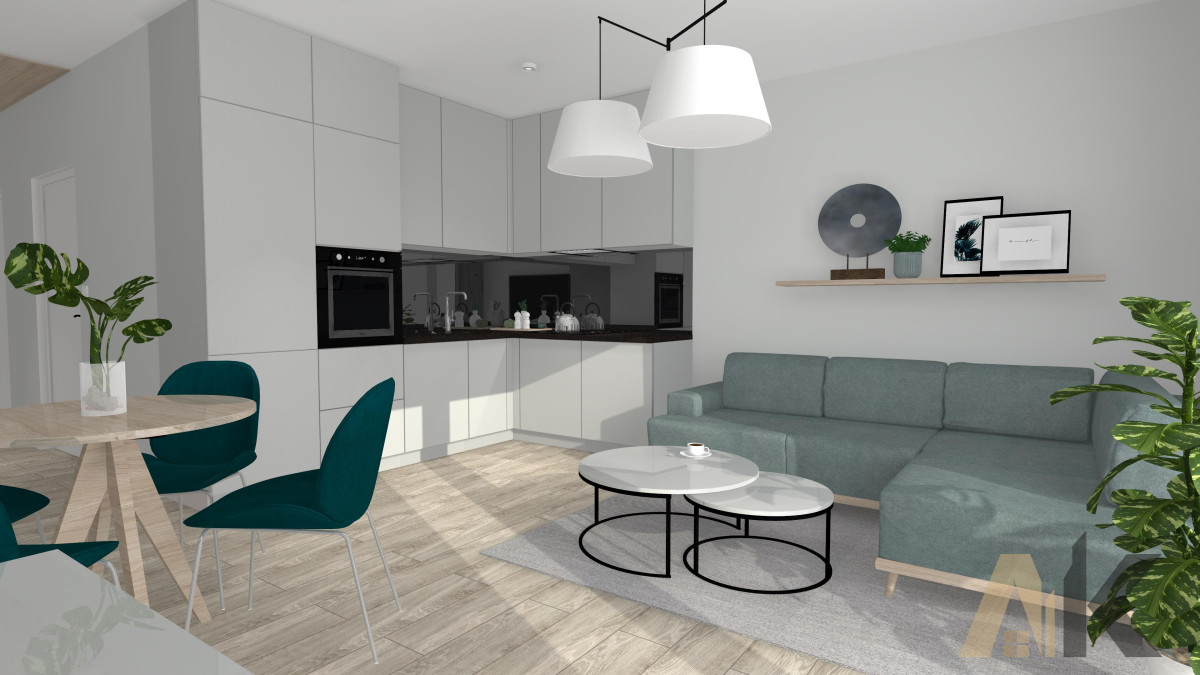Z salonu wyjście na przestronny balkon, z której rozpościera się widok na otaczającą zieleń. Duże okna balkonowe w każdym pomieszczeniu zapewniają świetne doświetlenie wnętrz przez cały dzień.