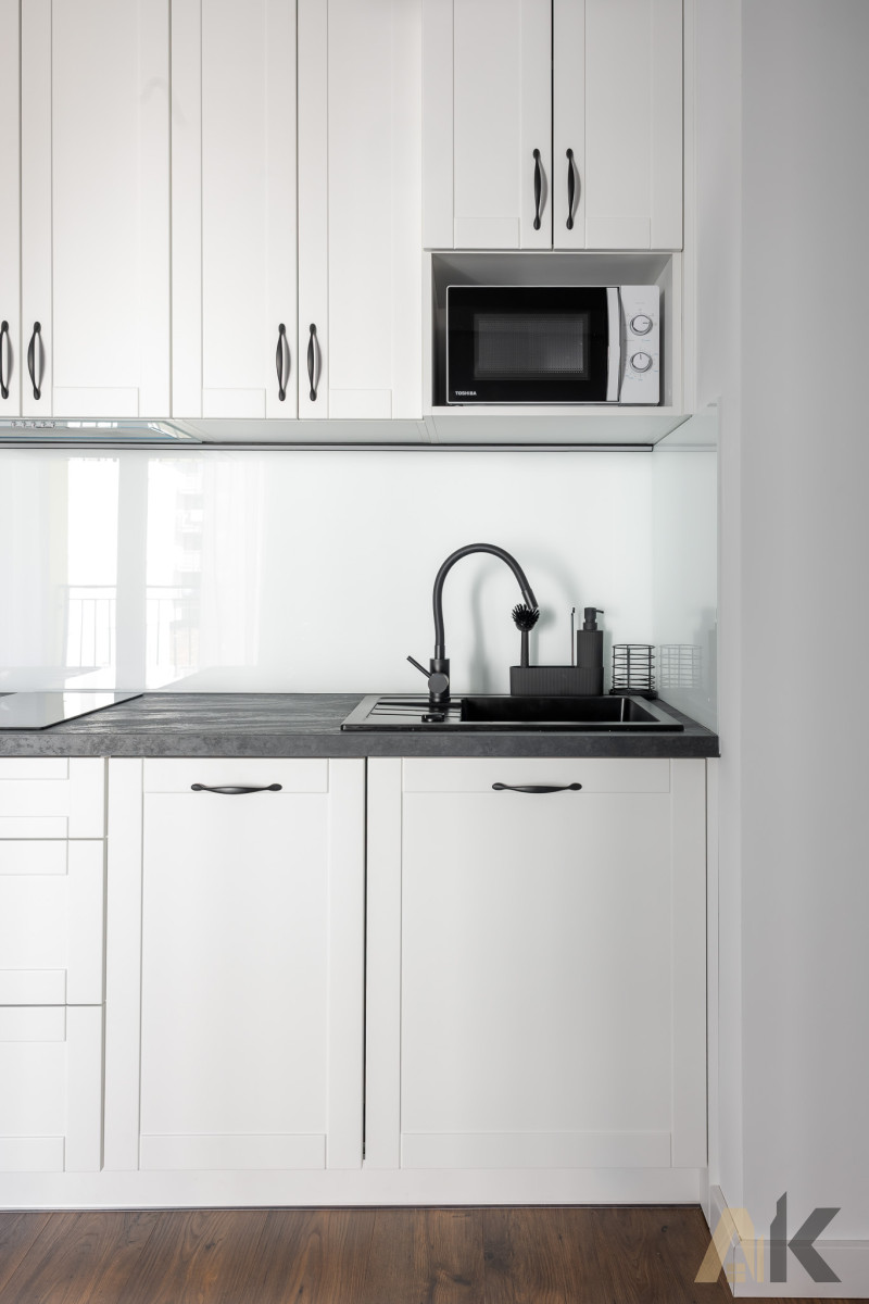Kuchnia: otwarta, wyposażona lodówkę, mikrofalówkę, płytę indukcyjną, zwywarkę. Umożliwiająca swobodne przygotowywanie posiłków.