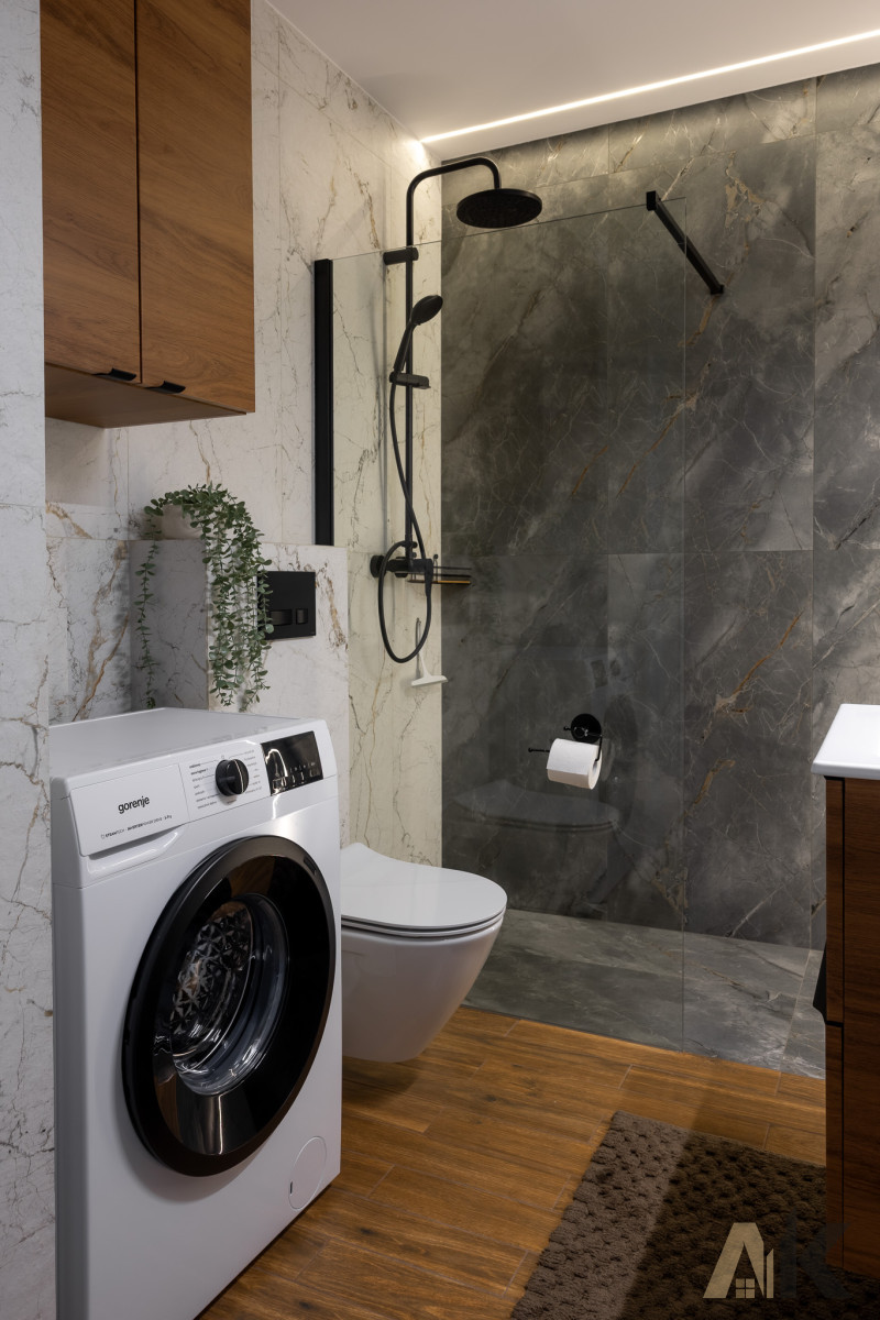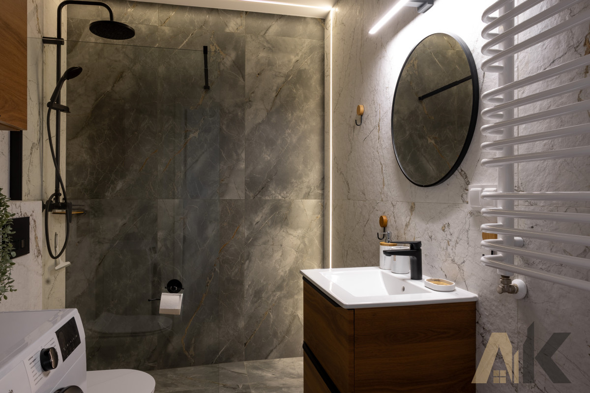 Łazienka: Szafka umywalkowa, kabina prysznicowa, zapewniająca maksymalny komfort użytkowania.